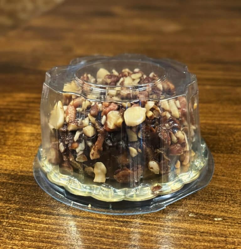 Base de ricota con pimienta negra, aceitunas negras, cebolla morada fresca, salmón salvaje